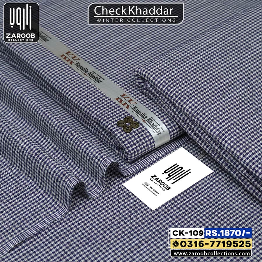 KAMALIA WINTER CHECK KHADDAR  is a Non-Chemicalized Fabric Characterized By Luster, Durability, And An Intense Soft Feel For Human Skin.