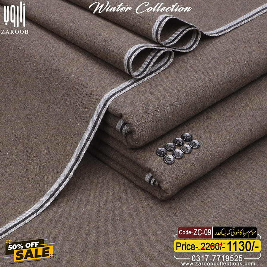 The Fabric is a blend of 100% Cotton That is Soft to Touch and Lightweight to Wear for Long Durations in The COLD. The Twisted Yarn Used to Make The Cotton Blend has a Spiral Arrangement of The Fibers Around The Axis of The Thread. Available In 7 Meters in Length And A Width Of 1 Yard, That Can Be Easily Tailored to Every Possible Body Shape And Size.