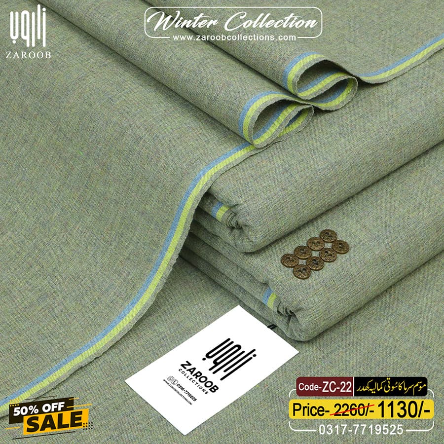 The Fabric is a blend of 100% Cotton That is Soft to Touch and Lightweight to Wear for Long Durations in The COLD. The Twisted Yarn Used to Make The Cotton Blend has a Spiral Arrangement of The Fibers Around The Axis of The Thread. Available In 7 Meters in Length And A Width Of 1 Yard, That Can Be Easily Tailored to Every Possible Body Shape And Size.