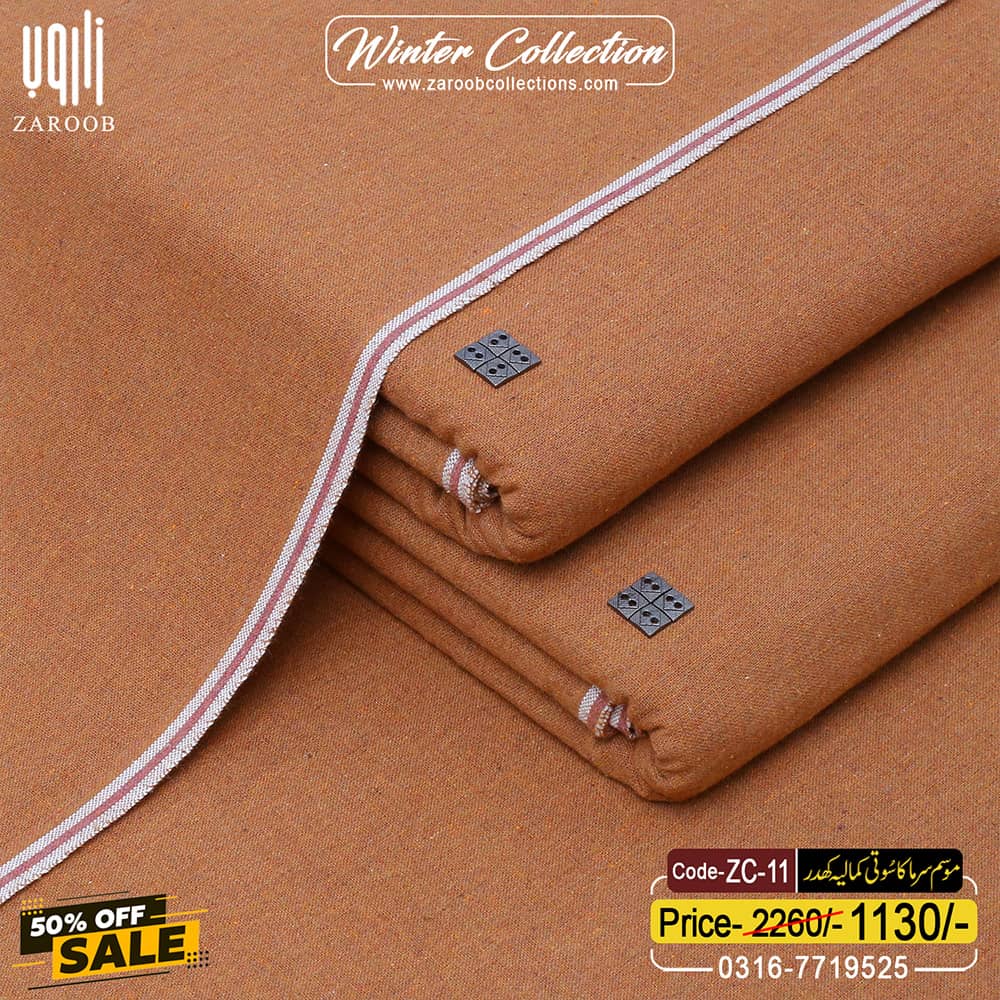 The Fabric is a blend of 100% Cotton That is Soft to Touch and Lightweight to Wear for Long Durations in The COLD. The Twisted Yarn Used to Make The Cotton Blend has a Spiral Arrangement of The Fibers Around The Axis of The Thread. Available In 7 Meters in Length And A Width Of 1 Yard, That Can Be Easily Tailored to Every Possible Body Shape And Size.