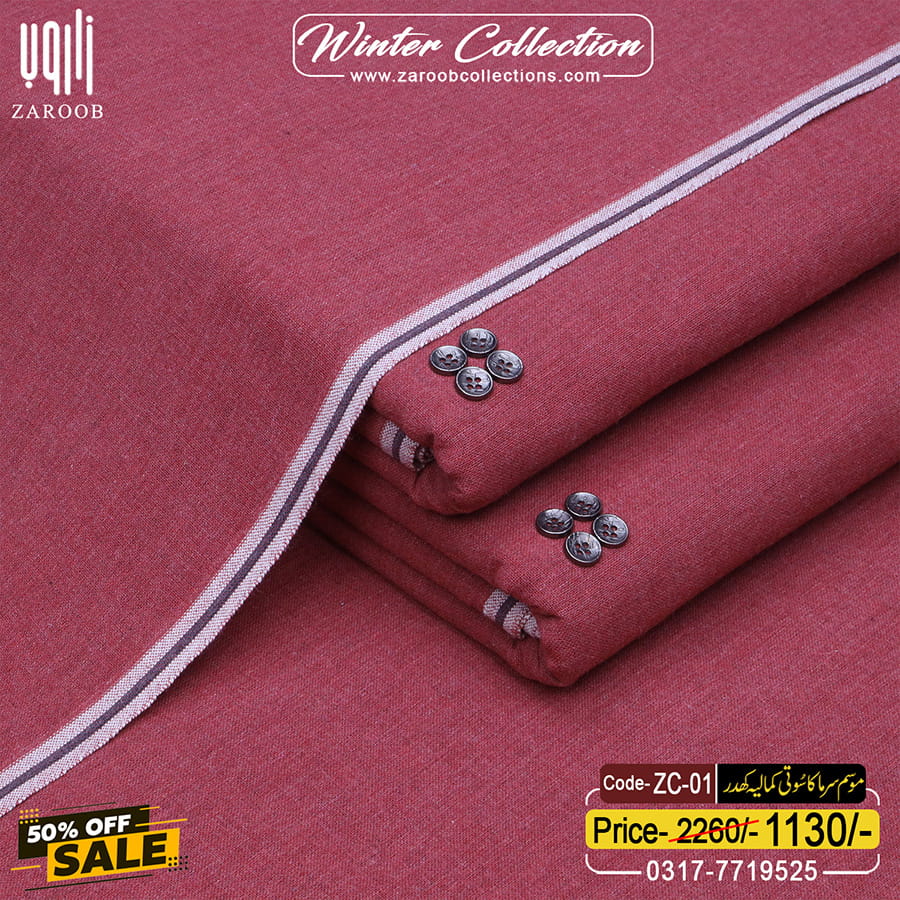 The Fabric is a blend of 100% Cotton That is Soft to Touch and Lightweight to Wear for Long Durations in The COLD. The Twisted Yarn Used to Make The Cotton Blend has a Spiral Arrangement of The Fibers Around The Axis of The Thread. Available In 7 Meters in Length And A Width Of 1 Yard, That Can Be Easily Tailored to Every Possible Body Shape And Size.